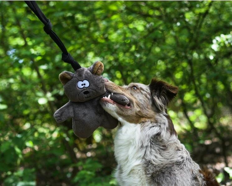 Ein Teddybär mit zwei Pfeifen und einem Griff verdirbt kein Tauziehen. Das Spielen mit einem Teddybären unterstützt die körperliche und geistige Fitness Ihres Hundes und stärkt die Bindung zwischen Besitzer und Hund. Mit dem Spielzeug können Sie Ihren Hund im Hundesport oder bei gängigen Kommandos ohne Leckerlis trainieren. Der Bär ist von Hand genäht, wir haben extra strapazierfähigen Faden und nur minimale Füllung verwendet, damit er lange hält. Der Bär macht quietschende Geräusche und wird das neue Lieblingsspielzeug Ihres Hundes.