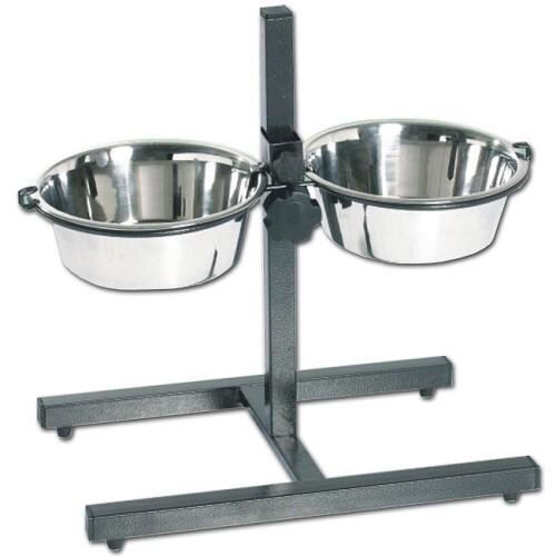 |Edelstahlschalen im Ständer verhindern eine Magenverdrehung.Höhenverstellbar, Füße gegen Verkratzen des Bodens.Enthält 2 x 2 l Schalen.Standhöhe: 43 cmmax. vers...