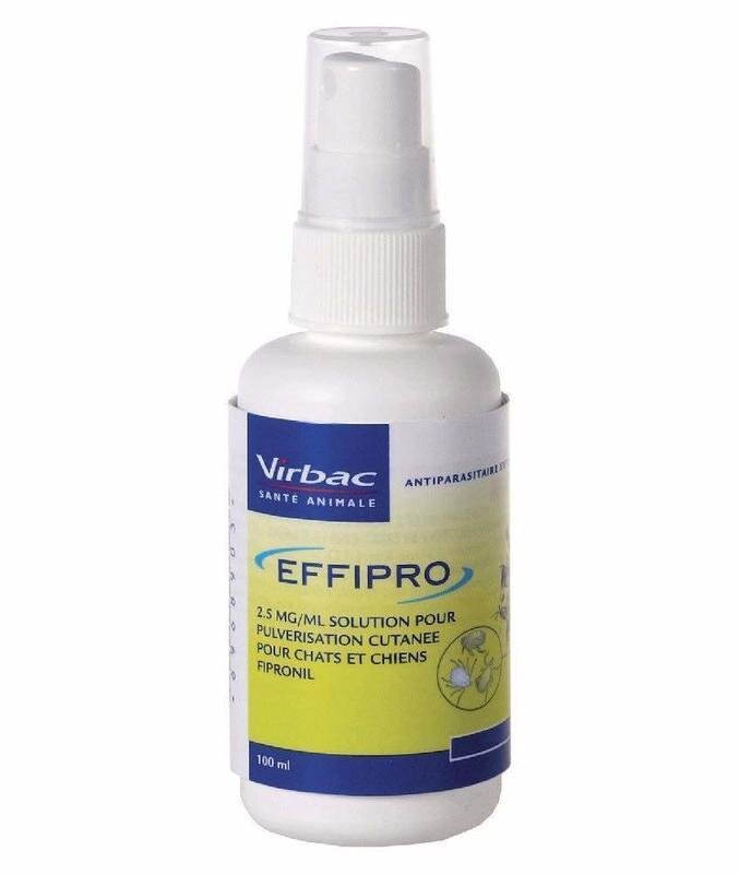 Produktbeschreibung Effipro spray - 100 ml Effipro spray Beschreibung Spray zur Heilung bei Befall durch Flöhe,Zecken und Läuse.Für Hunde und Katzen bestimmt...
