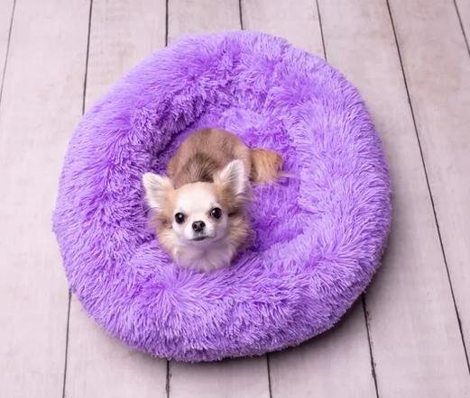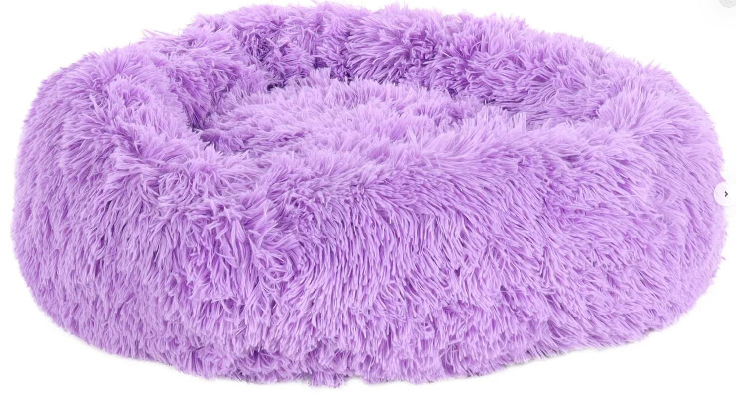 Dieser lila runde Korb ist perfekt für Ihren haarigen Freund! Hergestellt aus weichem Plüsch mit rutschfester Unterseite. Leicht zu reinigen und super bequem. G...