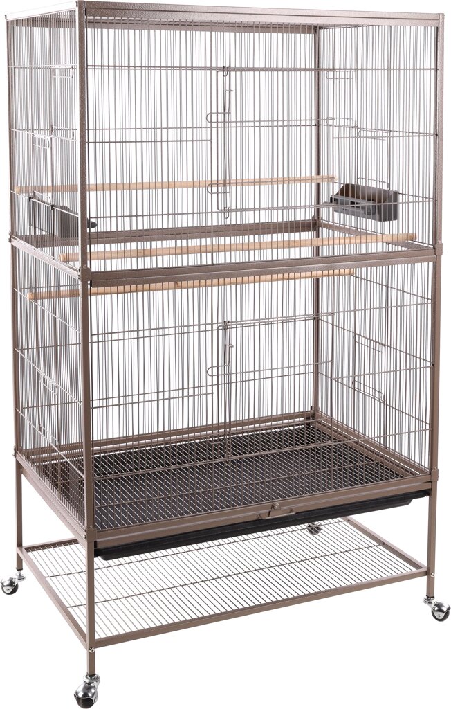 Mit 3 Holzsitzstangen Inklusive 2 großen Futter-/Trinknäpfen 6 Schwingtüren an der Seite 2 Türen an der Vorderseite Mit herausziehbarer Kunststoffwanne Herausne...