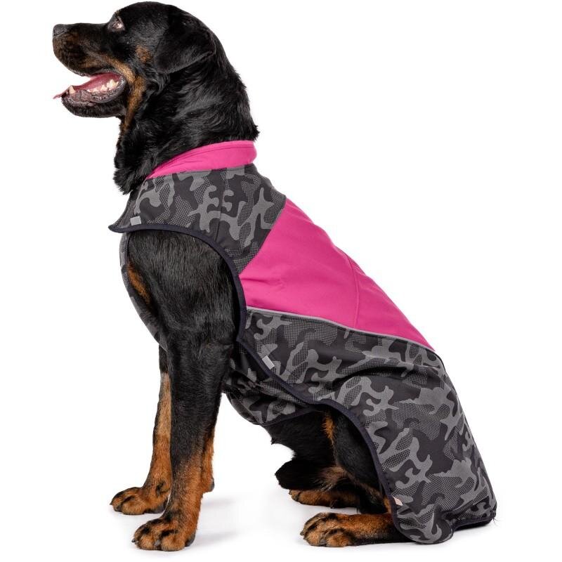 Die funktionelle Softshellweste Splendor schützt den Hund vor Kälte, Wind und Regen. Die hochwertige dreilagige Softshell hat nicht nur hervorragende Wärme- und Wasserdichtigkeitseigenschaften, sondern auch eine hohe Atmungsaktivität und Elastizität. Der Schnitt ist anatomisch so gestaltet, dass er die Bewegung des Hundes nicht einschränkt und gleichzeitig alle wichtigen Körperteile schützt. Die Kanten der Weste sind mit einem elastischen Saum vernäht, sodass der Anzug den Körper des Hundes perfekt umschließt, nicht aufbläht und keine Wärme darunter entweicht. Gummizüge an den Hinterbeinen und am Schwanz sorgen dafür, dass die Weste hinten nicht absteht. Hinter dem Hals befindet sich ein Loch zum Anbringen einer Leine und eine eingenähte Schlaufe zum Aufhängen (z. B. beim Trocknen). Das An- und Ausziehen geht dank Klettverschluss einfach und schnell: Der doppelseitige Verschluss unter dem Hals ermöglicht eine optimale Anpassung des Halsumfangs, seitliche Reißverschlüsse ermöglichen das Anziehen des Bauchs von links und rechts. Für sicheres Gehen bei schlechter Sicht ist die Weste mit reflektierenden Elementen ausgestattet.
