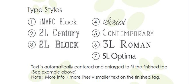 2.Schreiben Sie in die Bemerkung bei der Bestellung, bitte, die Nummer der Schrift und den Text, welchen Sie auf die vordere und hintere Seite der Marke gravieren wollen.