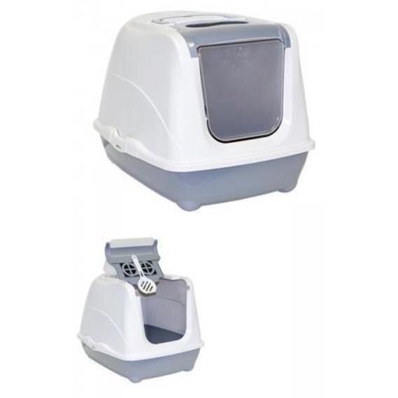 Toilette für Katzen mit Kunststoffabdeckung, Tür, Filter und Streuschaufel. Größe: 58 x 44 x 41 cm Farbe: grau...