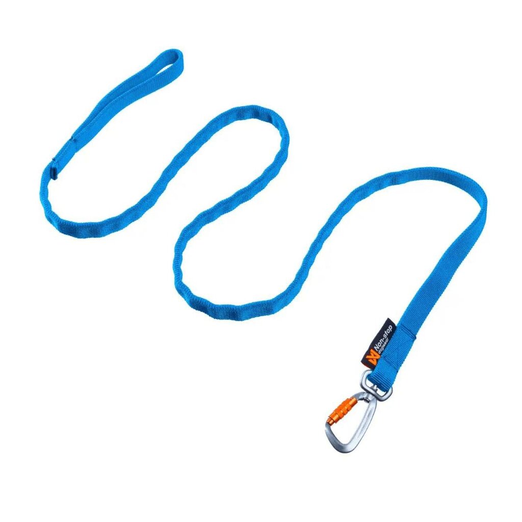 Die Bungee leash ist in zwei Farben erhältlich: orange/schwarz und blau.