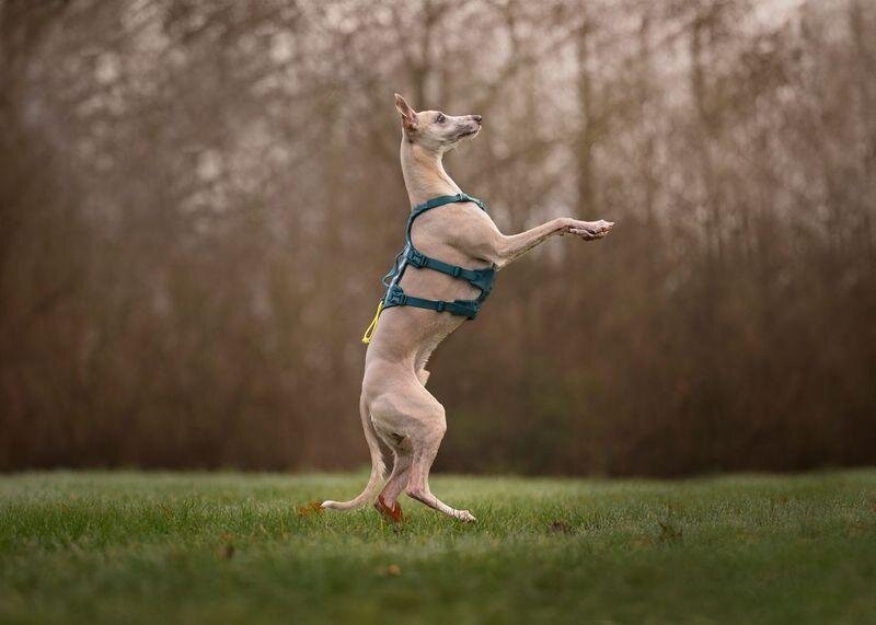 Mit zwei Verstellmöglichkeiten am Hals und vier Brustgurten bietet dieses Geschirr eine maßgeschneiderte Passform für die individuelle Form Deines Hundes und uneingeschränkte Bewegungsfreiheit. Es ist aus strapazierfähigem, aber dennoch weichem und flexiblem Material gefertigt und schmiegt sich an Deinen Hund an, ohne ihn zu beschweren, was maximalen Komfort sicherstellt.
