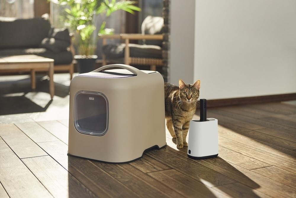 Sie möchten ein ein designorientiertes Katzenklo, das sich auch im Wohnbereich nicht verstecken muss? Dann stellen wir Ihnen gerne die Haubentoilette Biala von Rotho Mypet vor! Nicht nur die Optik dieser Katzentoilette überzeugt, auch die Hygiene kommt nicht zu kurz. Die Schale aus Plastik ist einfach zu reinigen und dank des Kohlefilters treten keine unangenehmen Gerüche aus. Die Katzenklappe wird durch einen Magneten schnell und sicher verschlossen, sodass auch hier keine Dämpfe austreten können. Zur Säuberung kann der Deckel einfach mit einer Hand abgenommen werden.