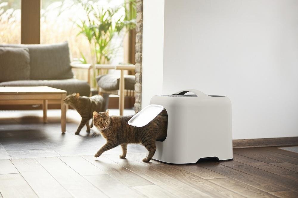 - BIALA Katzentoilette aus recyceltem Kunststoff.- Modernes und funktionales Design- Die Tür mit Magnet sorgt für ein selbstschließendes System- Bequemer Einsti...