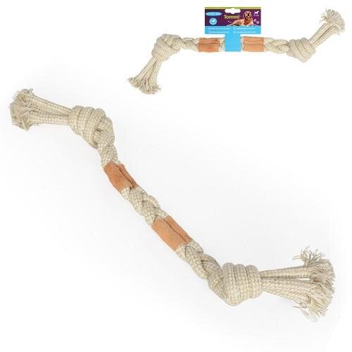 Eng geflochtenes Tauziehen aus natürlichen Materialien.• Aus Baumwolle, Jute und Leder• Länge: 30 cm• Gewicht: 100 g...